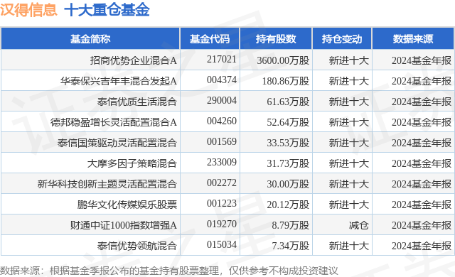 重仓汉得信息的前十大公募基金请见下表: